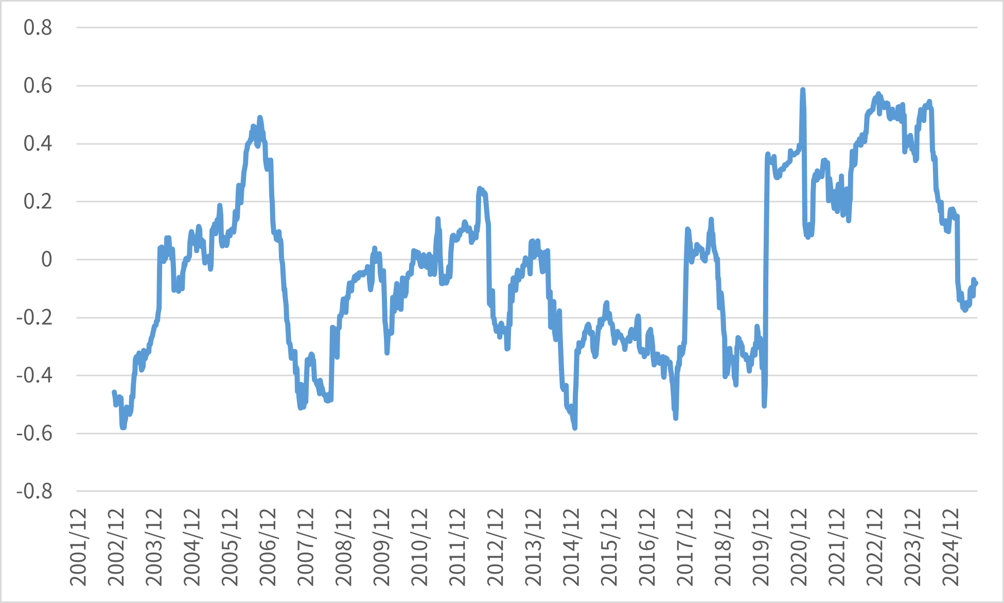 - 2023年以降も株式と債券の相関は高水準を維持し分散効果が効きづらい局面が続いた。