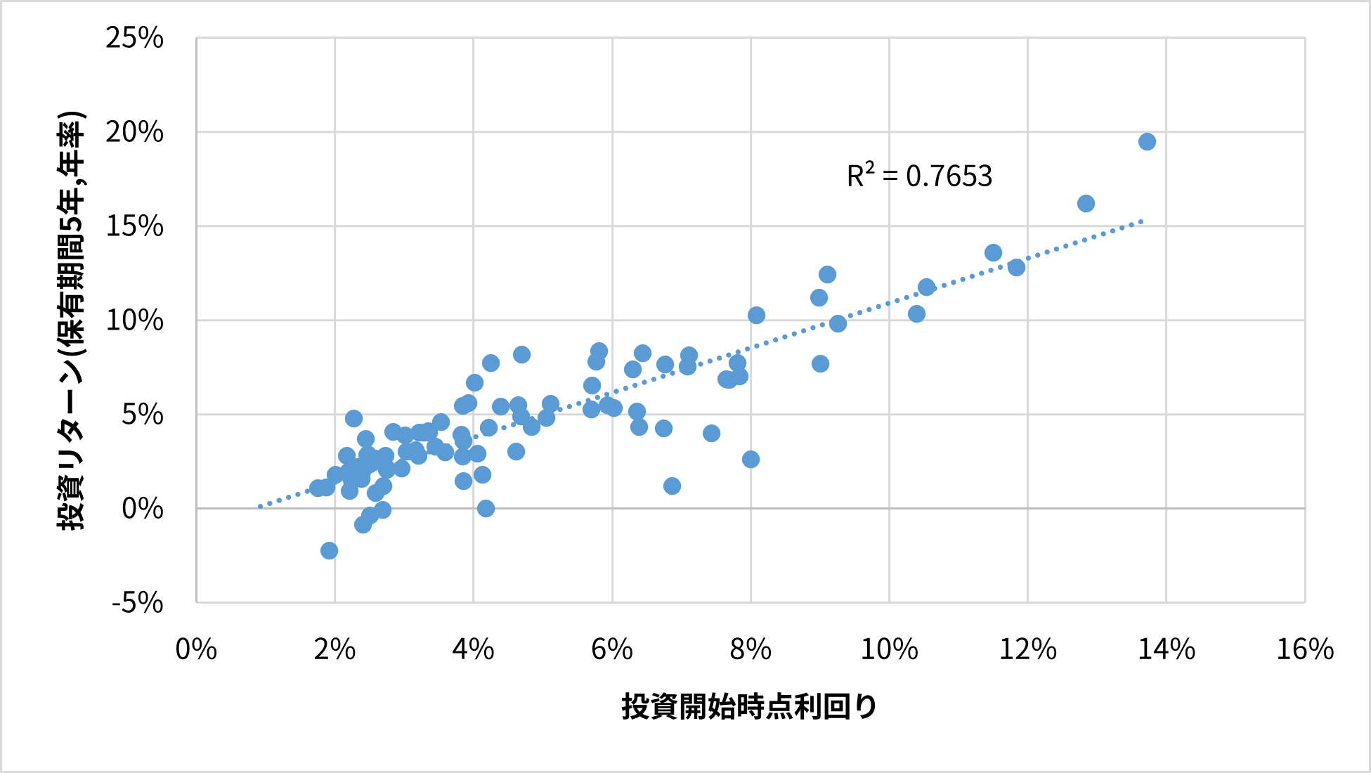 図5: 米国10年国債の投資開始利回りと投資リターン(保有期間5年)